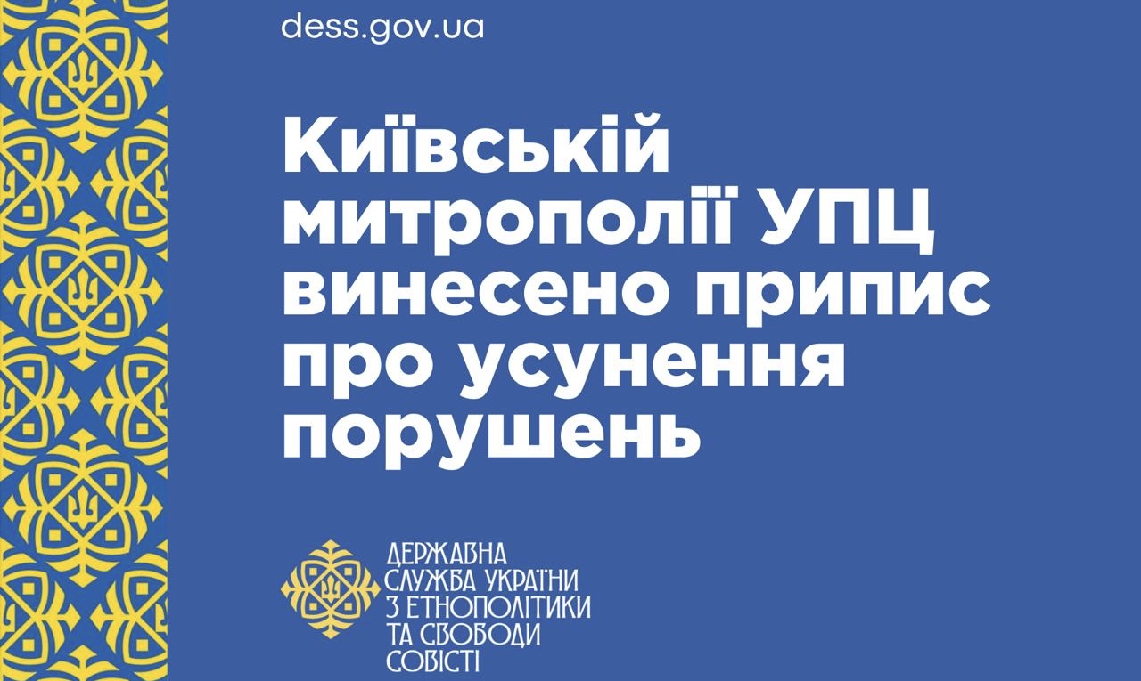 За результатами проведеного дослідження щодо наявності ознак афілійованості Київської митрополії Української Православної Церкви (московський патріархат в Україні – ред.) з іноземною релігійною організацією, діяльність якої заборонена на території України, Київській митрополії УПЦ (московський патріархат в Україні – ред.) винесено Припис про усунення порушень законодавства про свободу совісті та релігійні організації.