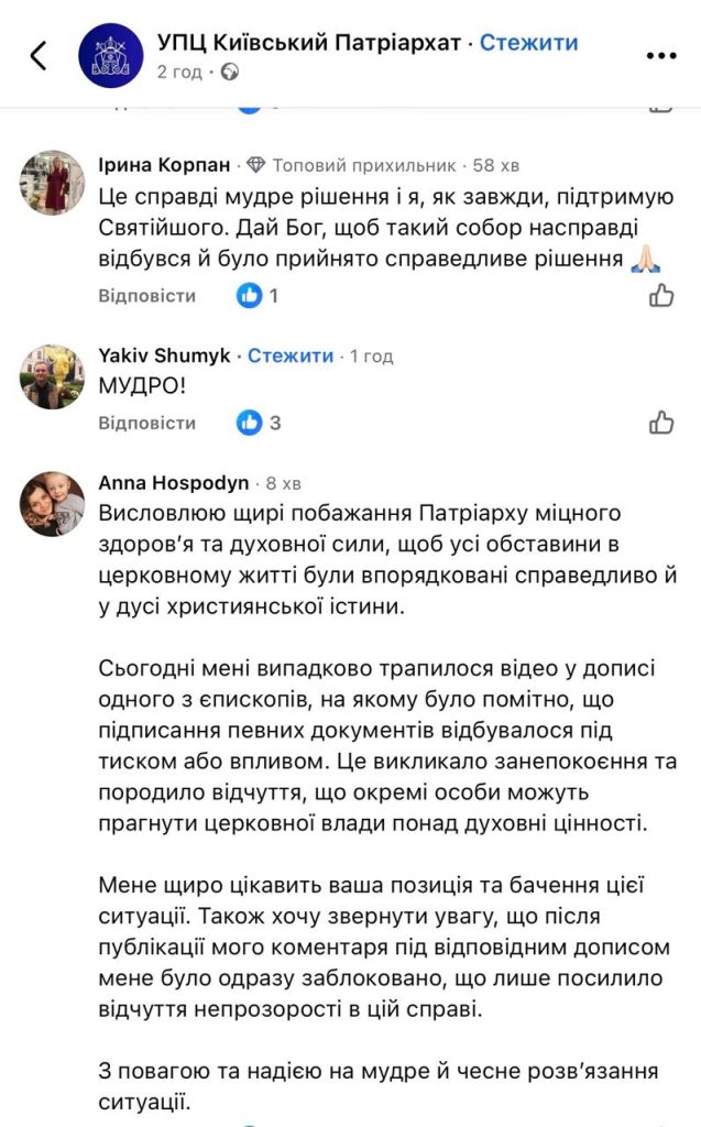 Ми оцінюємо цей крок як прояв боротьби за «правонаступництво» на чолі «УПЦ КП». Однак, оскільки ця церковна структура об’єктивно припинила своє самостійне існування, а будь-які згадки про неї тримаються тільки завдяки імені владики Філарета, то цей примарний шлях не принесе жодної користі українському православ’ю. Він стане лише інструментом ворогів ПЦУ у спробах дошкуляти їй, а також втіленням особистих інтересів та амбіцій нинішнього оточення Почесного Патріарха.