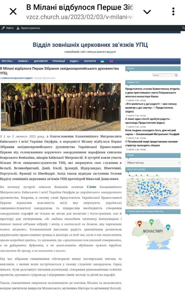 1 – 3 лютого 2023 року о. Сергій Божескул бере участь у І зустрічі духовенства Західноєвропейського вікаріатства УПЦ МП (московський патріархат в Україні – ред.) в Мілані. Там тоді зібралось біля 30 отців і їх начальство – єп. Вєніамін та о. Миколай Данілєвіч.