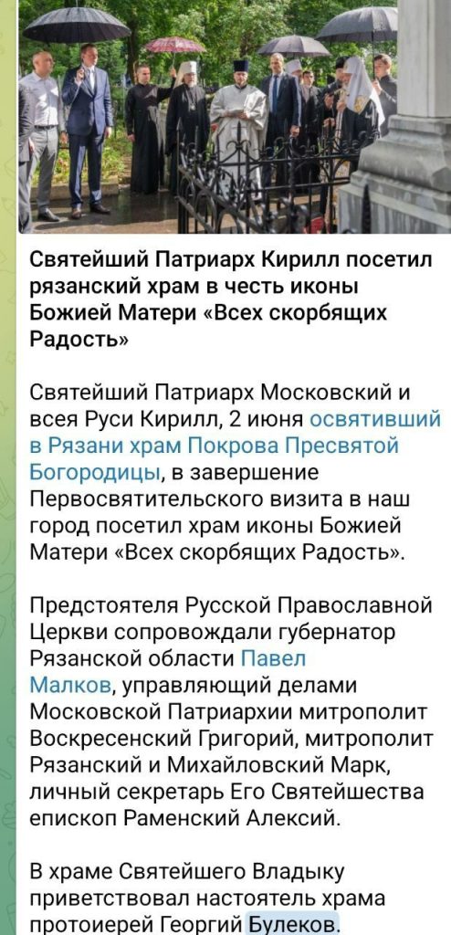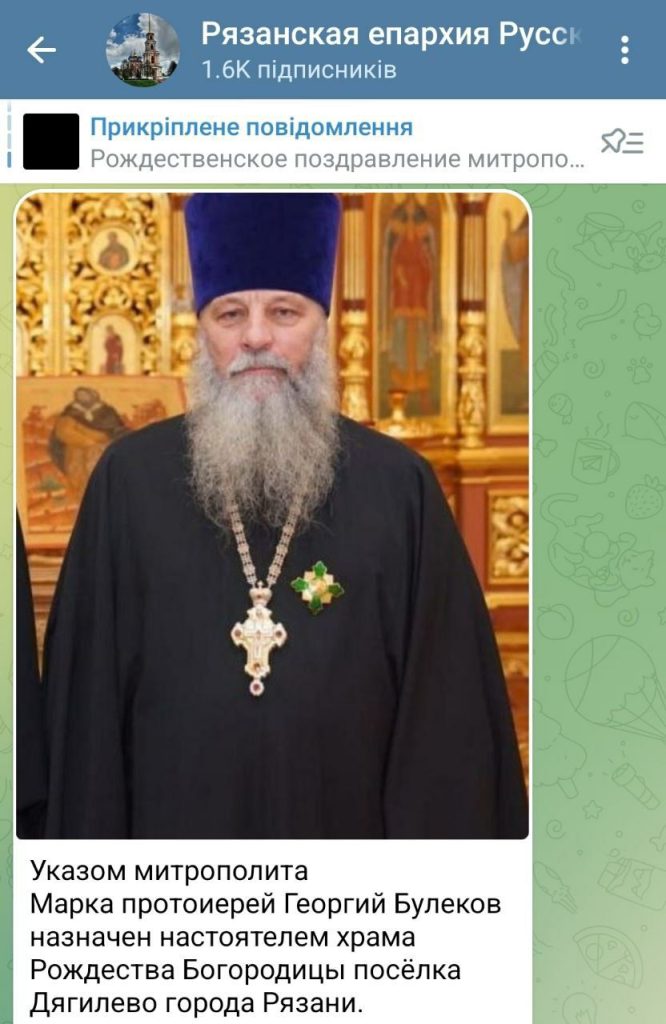 Але в червні 2025 року о. Георгія Булєкова перекидають служити в храм Різдва Богородиці п. Дяґілєво (район м. Рязань). Так саме того Дяґілєво, де розташована база російських стратегічних бомбардувальників, що регулярно вбивають українців та нищать нашу державу. Разом з тестем в цей храм перейшов і о. Сергій Божескул.