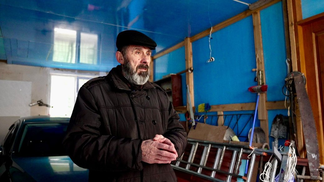 «Я навіть не знав, що спереду будинку був прильот і там ще страшніше. Машини всі горять, вибухають, там страшенний вогонь. Ми понесли драбину туди. На третьому поверсі була жінка чи дівчина, приклали драбину, але вогонь горів весь час. Я почав кричати, щоб газ перекрили, бо пожежників ще не було, тривала тривога.