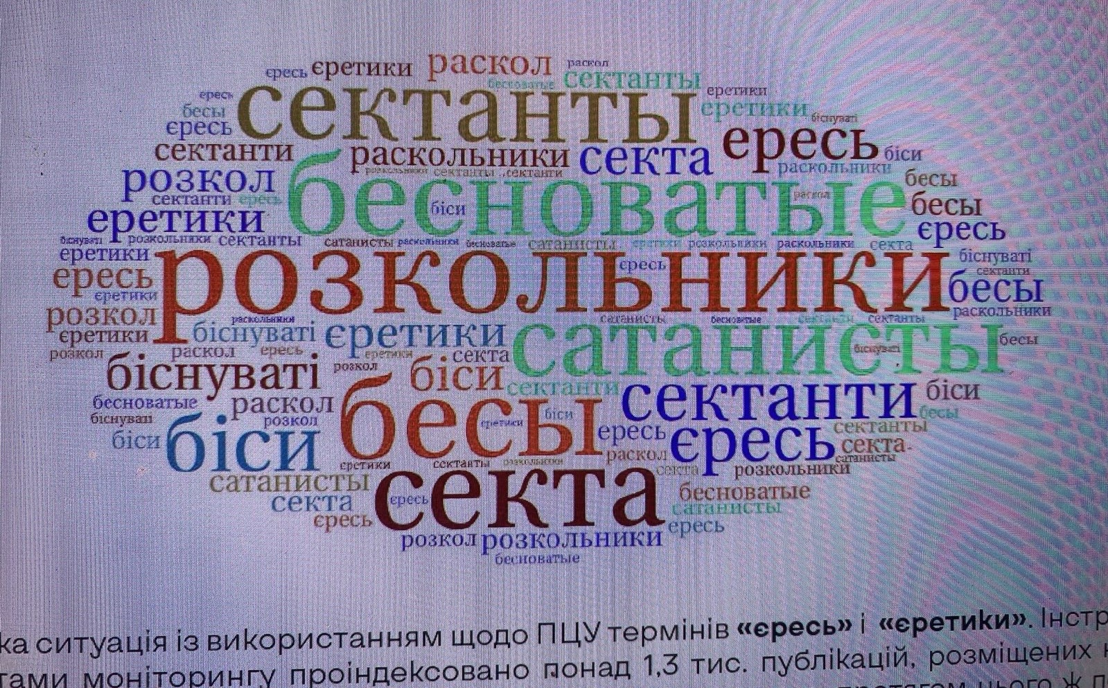 – мобілізації російського суспільства для участі в агресивній війні (наративи про «священну війну», «сатанізм», «релігійні переслідування», «триєдиний народ»);