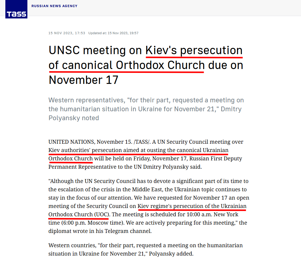 • Заперечення права українців на незалежну православну церкву, відокремлену від російської (дивіться приклади тут і тут)