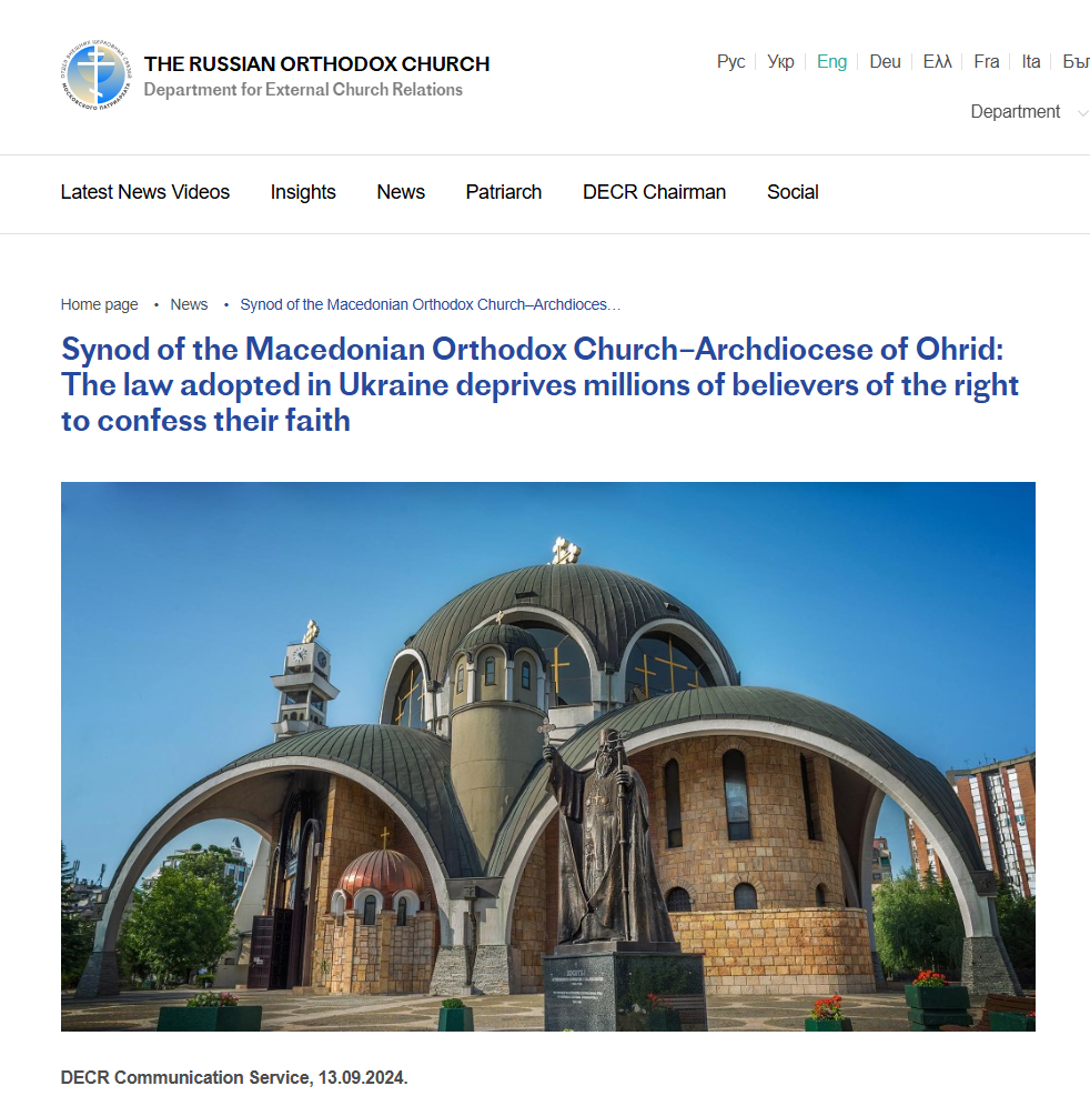 Російська православна пропаганда знаходить вихід у церковних ЗМІ Північної Македонії