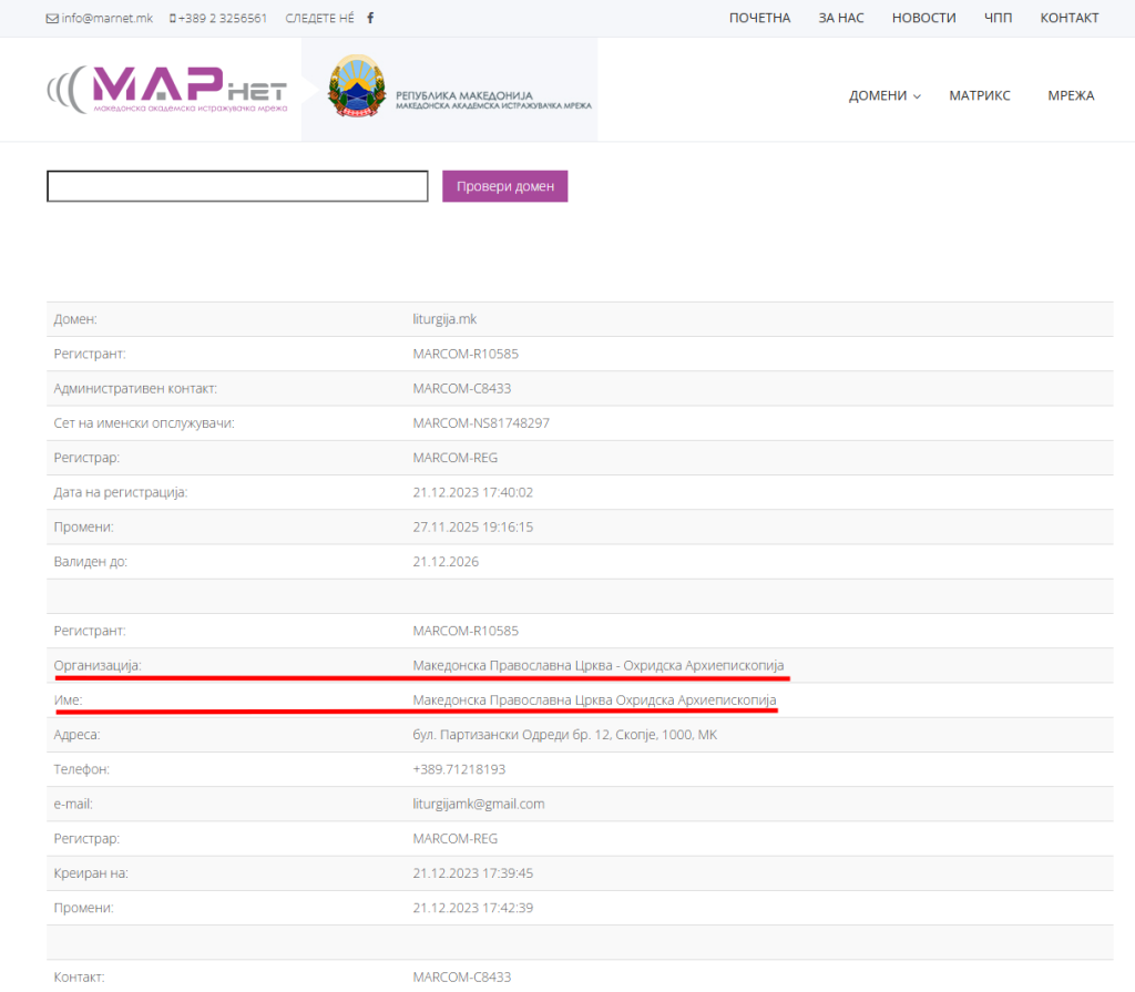 Команда Antidisinfo.net зв’язалася як з головним редактором Liturgija.mk, так і з центральним офісом Македонської православної церкви Охридської архієпископії, щоб дізнатися про зв’язок веб-сайту з ними і про те, чому він зареєстрований на їх ім’я. Однак на момент публікації вони не відповіли.