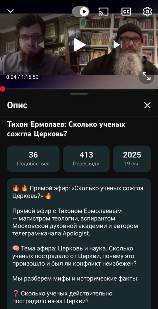Мабуть найзашкварнішим серед гостей о. Тарасія був Тіхан Єрмолаєв – аспірант Московської Духовної академії, адмін каналу «Apologist», патріот Росії, і судячи з фото в інсті ще й дотичний до підтримки т.зв. «СВО».