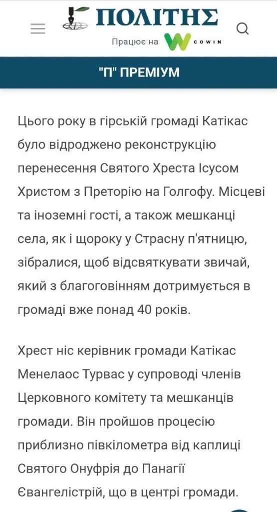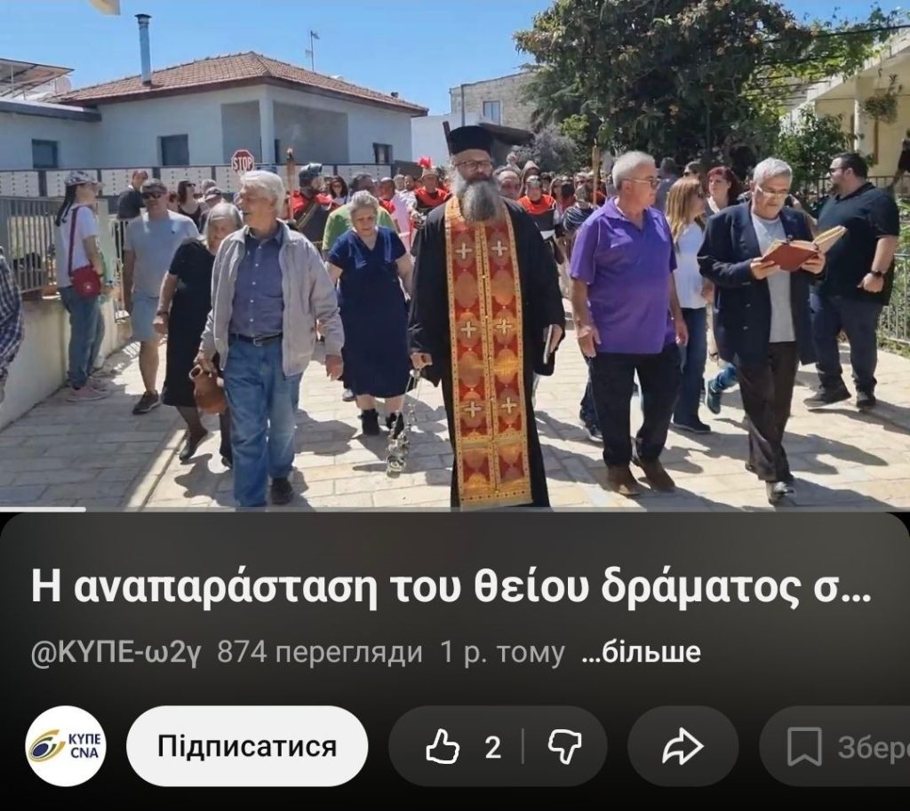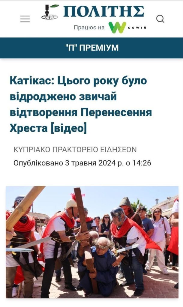 Знайти його допомогла грекомовна стаття 2024 року про процесію «ходи на Голгофу» в Катікасі, що відбуваться на Страсному тижні перед Великоднем.