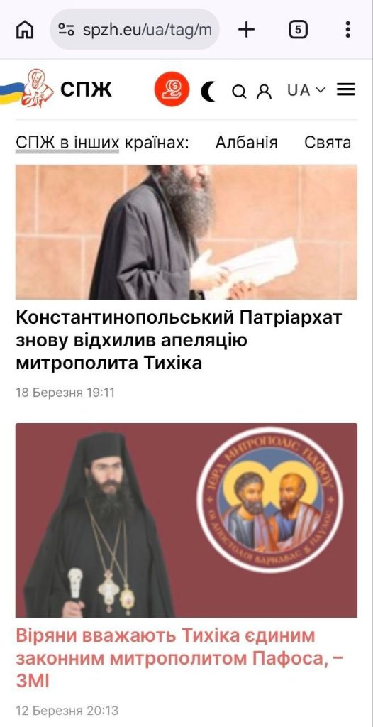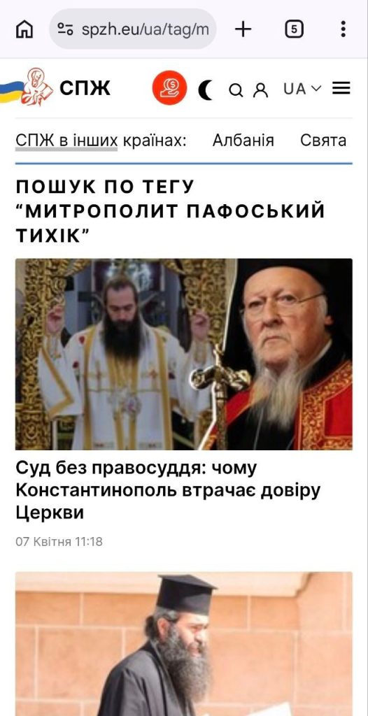 І хто ж якнайбільше висвітлює цей скандал, підтримуючи митр. Тихіка? Звісно ж СПЖ у Греції, як завуальовано іменує себе вже віднайдений нами о. Тарасій Забудько. Адже треба захищати свого кіпрського патрона та однодумця.