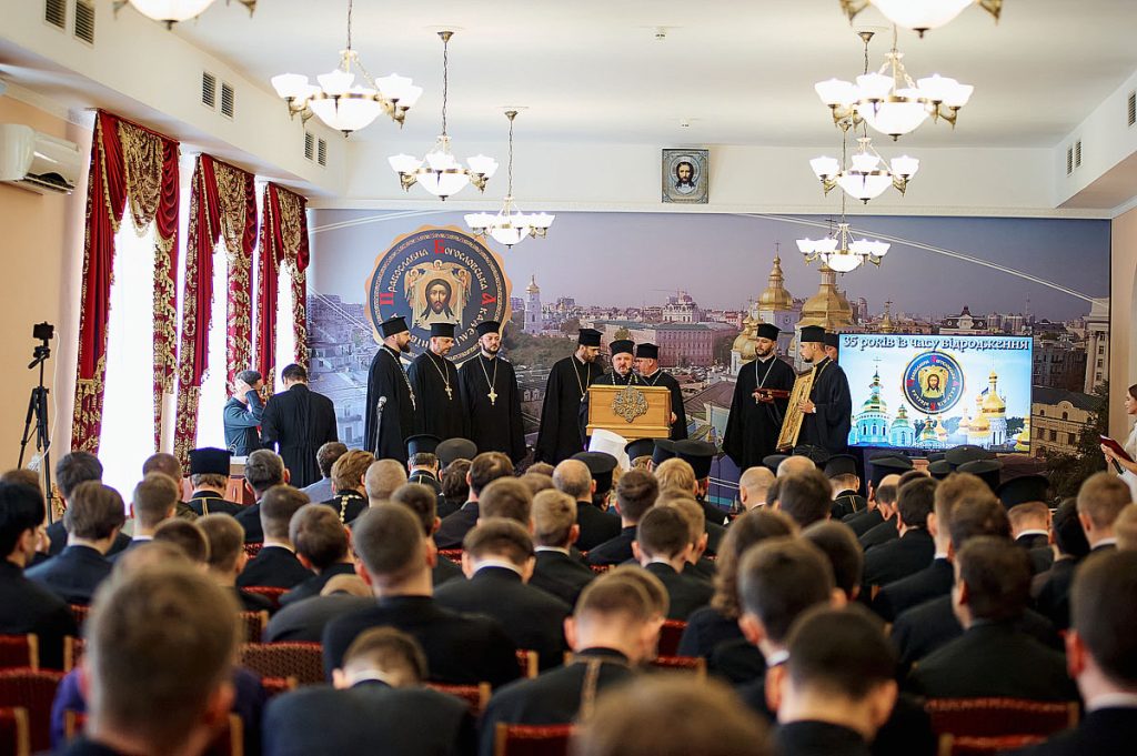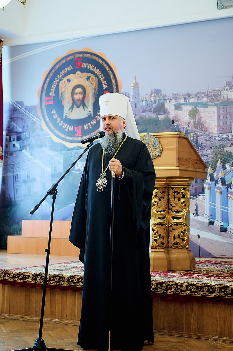 «Сьогодні ми, окрім вшанування пам’яті апостола Іоана, маємо особливу нагоду для подяки Богові, відзначаючи 35 років відновлення у Києві праці богословської школи, яка нині зросла в нашу Академію. Після десятиліть державних атеїстичних гонінь і заборони на свою працю, у 1989 році в стінах відроджуваної Печерської Лаври відновила свою діяльність і Київська духовна семінарія. Складним був шлях цієї духовної школи, як і всієї нашої Помісної Української Православної Церкви. Але за ці три з половиною десятиліття ми маємо численні добрі плоди, якими можемо пишатися і за які нині особливо дякуємо Богові.
