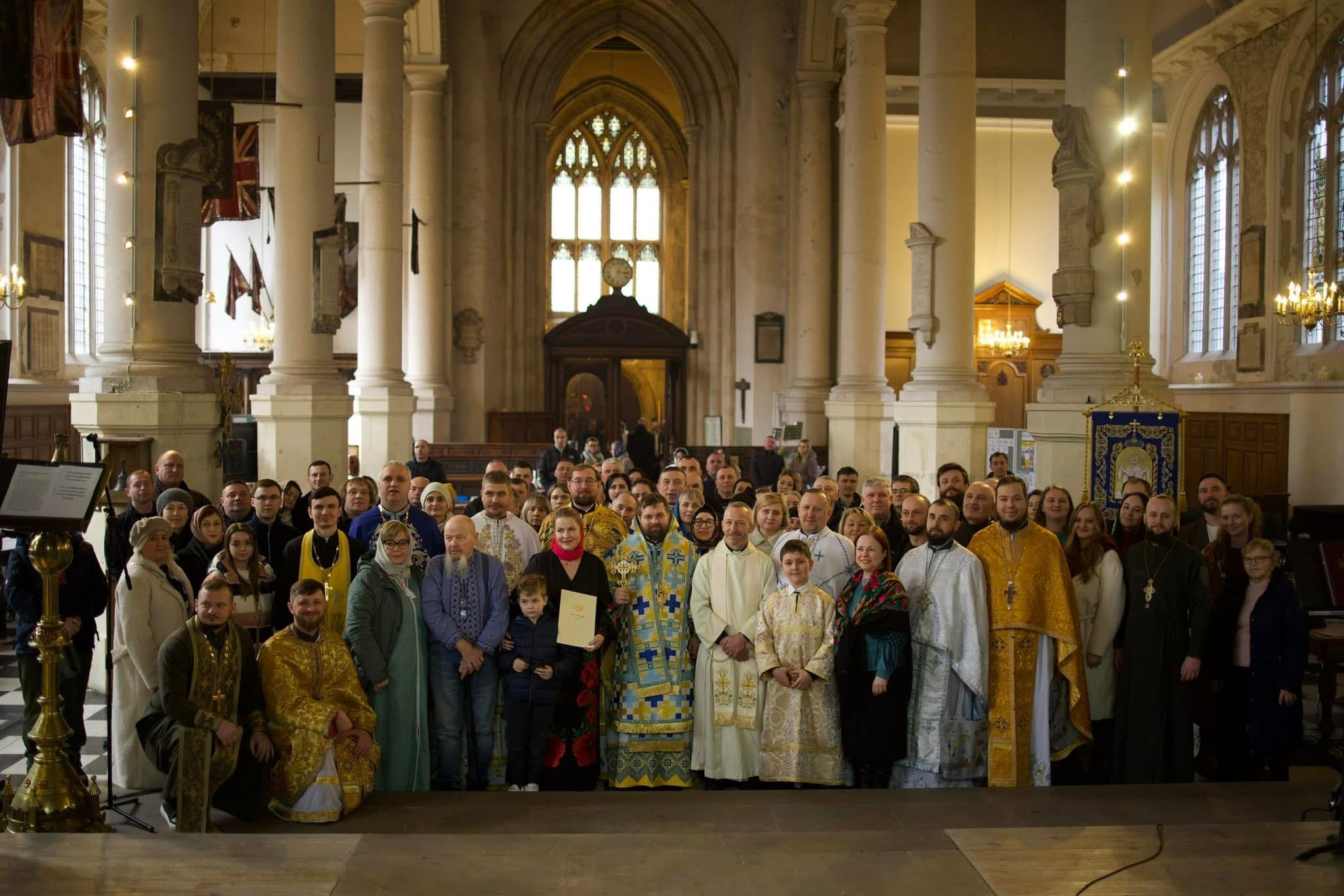 16 лютого в православній українській парафії Покрови Пресвятої Богородиці у Лондоні відбулася спільна Божественна літургія разом із військовими капеланами ПЦУ, які наразі проходять навчання у Великій Британії. Очолив службу Преосвященний єпископ Херсонський і Каховський Борис (Харко) Православної Церкви України.
